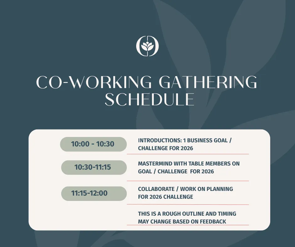 Join us for a COLLABORATIVE CO-WORKING AND MASTERMIND EXPERIENCE designed for women in business who want focus, momentum, and meaningful support- not another lonely workday.